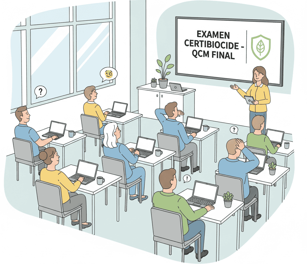 La réussite à la formation Certibiocide repose autant sur l’acquisition des connaissances que sur leur validation. Les participants sont évalués tout au long du parcours et lors d’un examen final. Ce processus garantit que chaque professionnel maîtrise la réglementation, les bonnes pratiques et la sécurité.